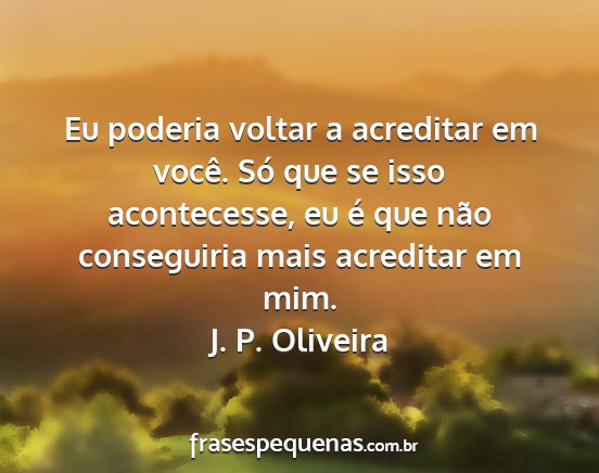 Eu poderia voltar a acreditar em você. Só que se isso acontecesse, eu é que não conseguiria mais acreditar em mim.J. P. Oliveira