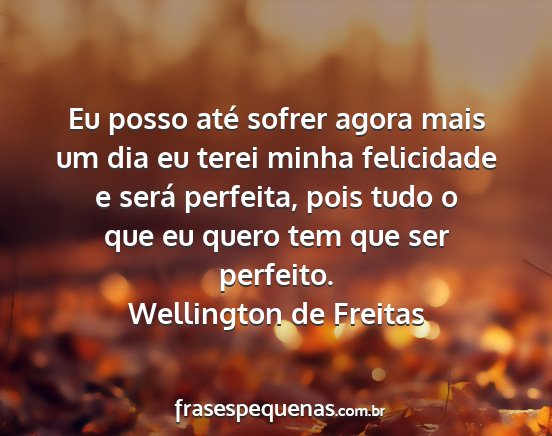 Eu posso até sofrer agora mais um dia eu terei minha felicidade e será perfeita, pois tudo o que eu quero tem que ser perfeito.Wellington de Freitas