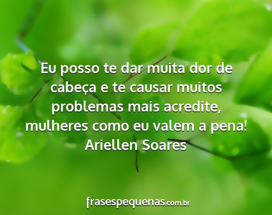 Eu posso te dar muita dor de cabeça e te causar muitos problemas mais acredite, mulheres como eu valem a pena!Ariellen Soares