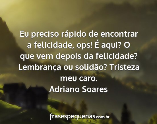 Eu preciso rápido de encontrar a felicidade, ops! É aqui? O que vem depois da felicidade? Lembrança ou solidão? Tristeza meu caro.Adriano Soares