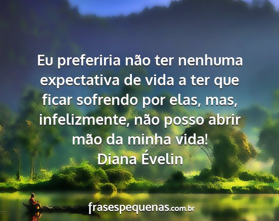 Eu preferiria não ter nenhuma expectativa de vida a ter que ficar sofrendo por elas, mas, infelizmente, não posso abrir mão da minha vida!Diana Évelin