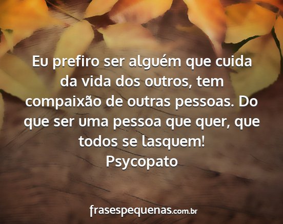 Eu prefiro ser alguém que cuida da vida dos outros, tem compaixão de outras pessoas. Do que ser uma pessoa que quer, que todos se lasquem!Psycopato