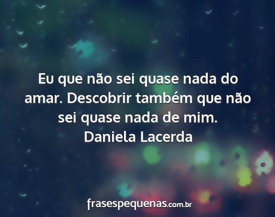 Eu que não sei quase nada do amar. Descobrir também que não sei quase nada de mim.