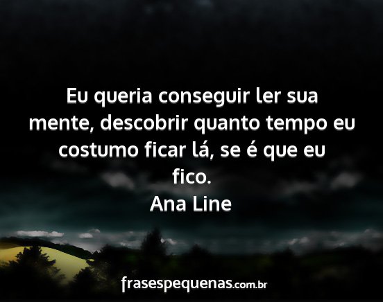 Eu queria conseguir ler sua mente, descobrir quanto tempo eu costumo ficar lá, se é que eu fico.Ana Line