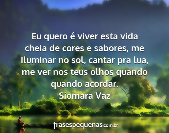 Eu quero é viver esta vida cheia de cores e sabores, me iluminar no sol, cantar pra lua, me ver nos teus olhos quando quando acordar.Siomara Vaz