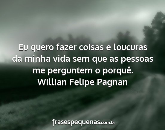 Eu quero fazer coisas e loucuras da minha vida sem que as pessoas me perguntem o porquê.Willian Felipe Pagnan