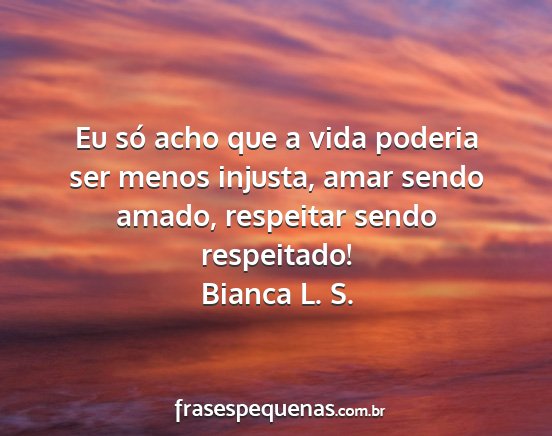 Eu só acho que a vida poderia ser menos injusta, amar sendo amado, respeitar sendo respeitado!Bianca L. S.