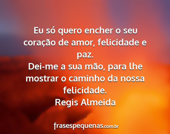 Dei-me a sua mão, para lhe mostrar o caminho da nossa felicidade.Regis Almeida