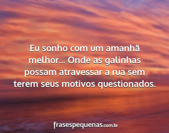 Eu sonho com um amanhã melhor... Onde as galinhas possam atravessar a rua sem terem seus motivos questionados.