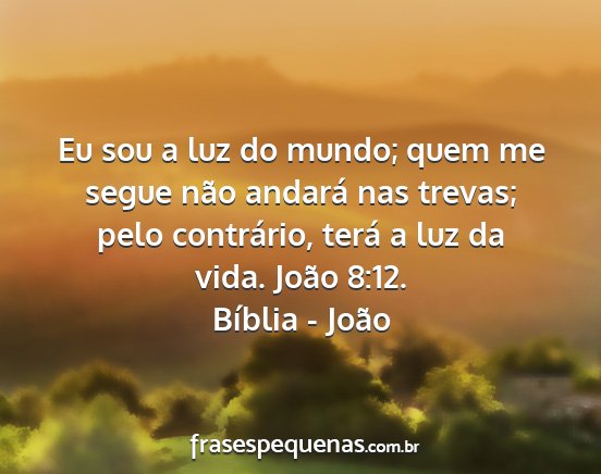 Eu sou a luz do mundo; quem me segue não andará nas trevas; pelo contrário, terá a luz da vida. João 8:12.Bíblia - João