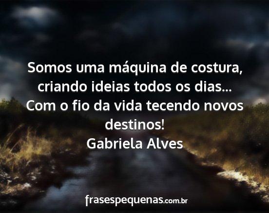 Somos uma máquina de costura, criando ideias todos os dias... Com o fio da vida tecendo novos destinos!Gabriela Alves