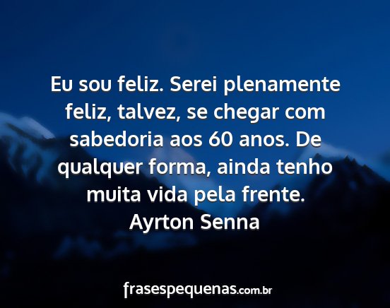 Eu sou feliz. Serei plenamente feliz, talvez, se chegar com sabedoria aos 60 anos. De qualquer forma, ainda tenho muita vida pela frente.Ayrton Senna