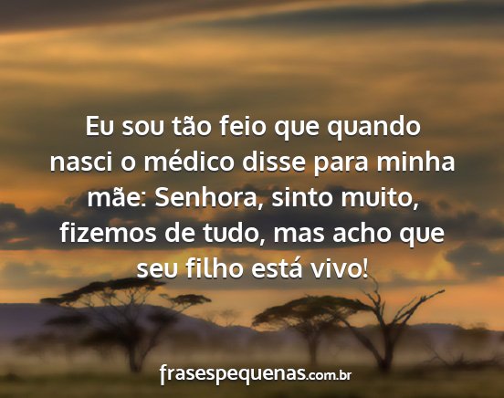 Eu sou tão feio que quando nasci o médico disse para minha mãe: Senhora, sinto muito, fizemos de tudo, mas acho que seu filho está vivo!