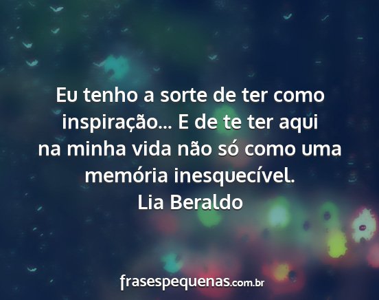 Eu tenho a sorte de ter como inspiração... E de te ter aqui na minha vida não só como uma memória inesquecível.Lia Beraldo