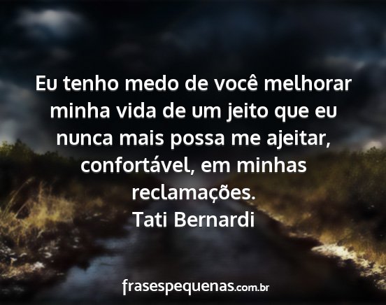 Eu tenho medo de você melhorar minha vida de um jeito que eu nunca mais possa me ajeitar, confortável, em minhas reclamações.Tati Bernardi