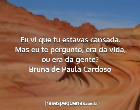 Eu vi que tu estavas cansada. Mas eu te pergunto, era da vida, ou era da gente?Bruna de Paula Cardoso