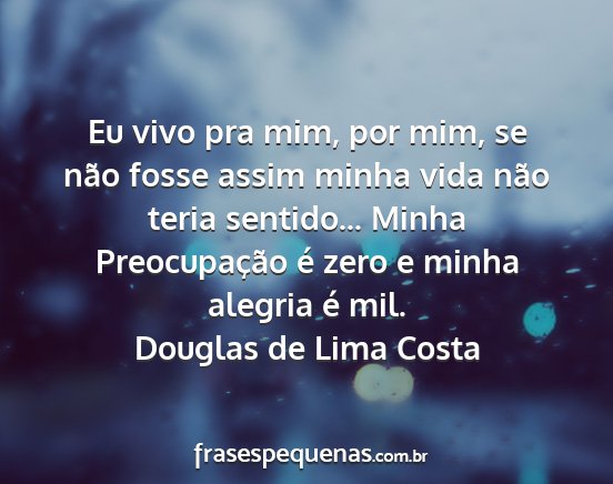 Eu vivo pra mim, por mim, se não fosse assim minha vida não teria sentido... Minha Preocupação é zero e minha alegria é mil.Douglas de Lima Costa