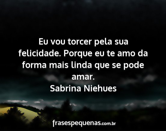 Eu vou torcer pela sua felicidade. Porque eu te amo da forma mais linda que se pode amar.Sabrina Niehues