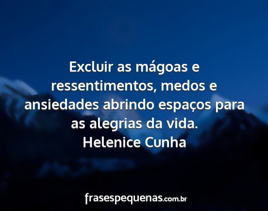 Excluir as mágoas e ressentimentos, medos e ansiedades abrindo espaços para as alegrias da vida.Helenice Cunha