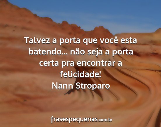 Talvez a porta que você esta batendo... não seja a porta certa pra encontrar a felicidade!Nann Stroparo