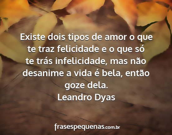 Existe dois tipos de amor o que te traz felicidade e o que só te trás infelicidade, mas não desanime a vida é bela, então goze dela.Leandro Dyas