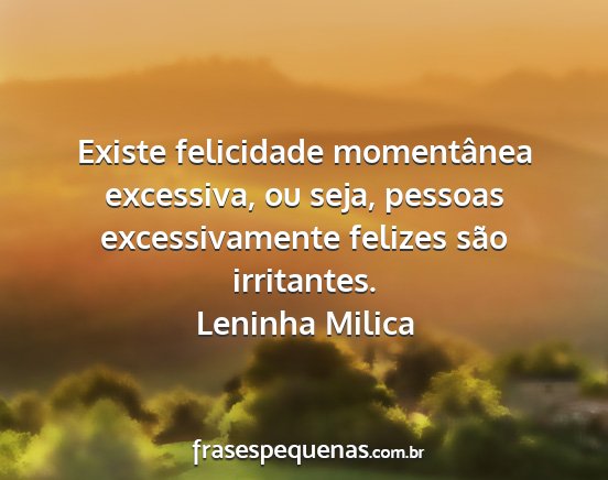 Existe felicidade momentânea excessiva, ou seja, pessoas excessivamente felizes são irritantes.Leninha Milica