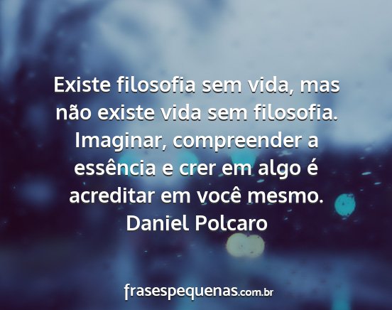 Existe filosofia sem vida, mas não existe vida sem filosofia. Imaginar, compreender a essência e crer em algo é acreditar em você mesmo.Daniel Polcaro