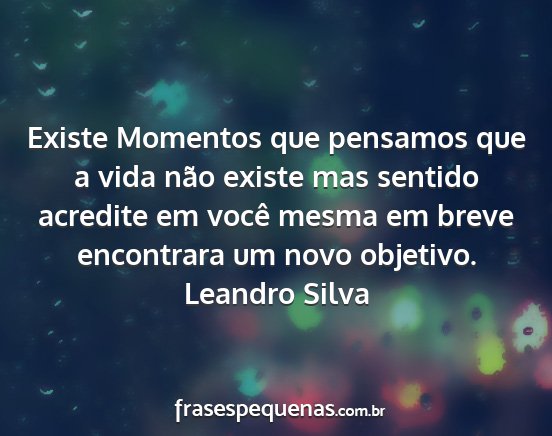 Existe Momentos que pensamos que a vida não existe mas sentido acredite em você mesma em breve encontrara um novo objetivo.Leandro Silva
