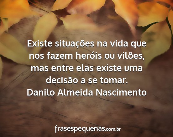 Existe situações na vida que nos fazem heróis ou vilões, mas entre elas existe uma decisão a se tomar.Danilo Almeida Nascimento