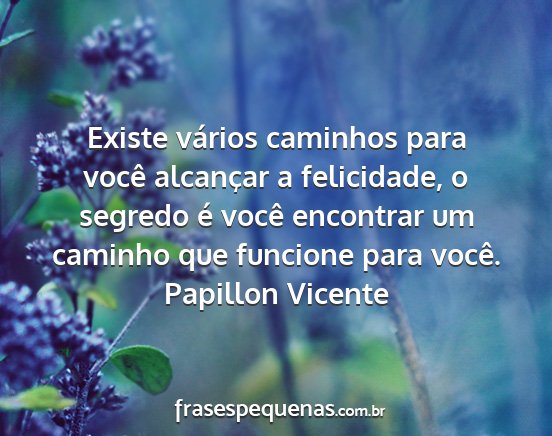 Existe vários caminhos para você alcançar a felicidade, o segredo é você encontrar um caminho que funcione para você.Papillon Vicente
