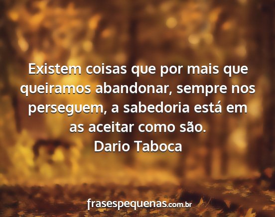 Existem coisas que por mais que queiramos abandonar, sempre nos perseguem, a sabedoria está em as aceitar como são.Dario Taboca