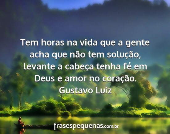 Tem horas na vida que a gente acha que não tem solução, levante a cabeça tenha fé em Deus e amor no coração.Gustavo Luiz