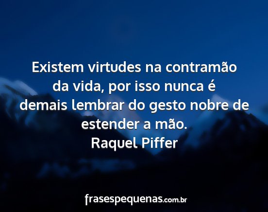 Existem virtudes na contramão da vida, por isso nunca é demais lembrar do gesto nobre de estender a mão.Raquel Piffer