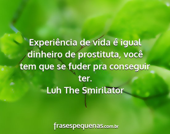 Experiência de vida é igual dinheiro de prostituta, você tem que se fuder pra conseguir ter.Luh The Smirilator