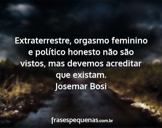 Extraterrestre, orgasmo feminino e político honesto não são vistos, mas devemos acreditar que existam.Josemar Bosi