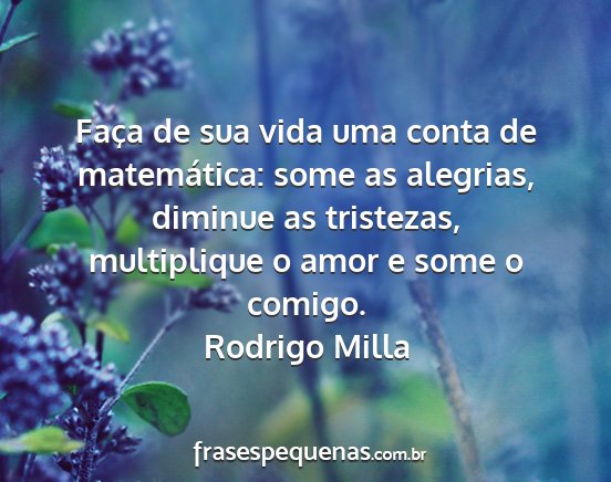 Faça de sua vida uma conta de matemática: some as alegrias, diminue as tristezas, multiplique o amor e some o comigo.Rodrigo Milla