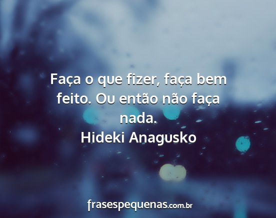 Faça o que fizer, faça bem feito. Ou então não faça nada.