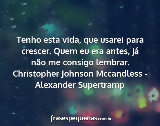 Tenho esta vida, que usarei para crescer. Quem eu era antes, já não me consigo lembrar.Christopher Johnson Mccandless - Alexander Supertramp