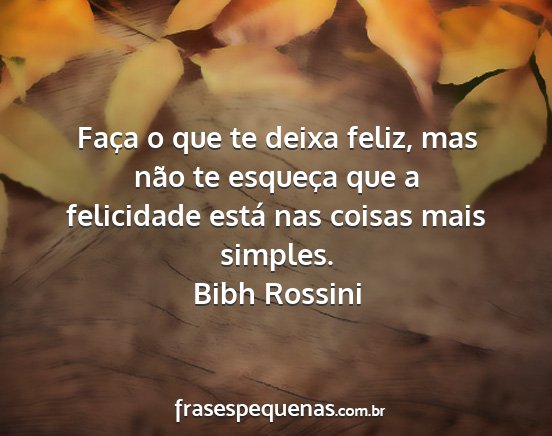 Faça o que te deixa feliz, mas não te esqueça que a felicidade está nas coisas mais simples.Bibh Rossini