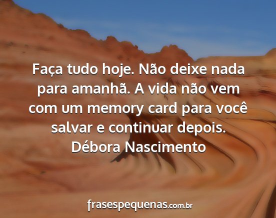 Faça tudo hoje. Não deixe nada para amanhã. A vida não vem com um memory card para você salvar e continuar depois.Débora Nascimento