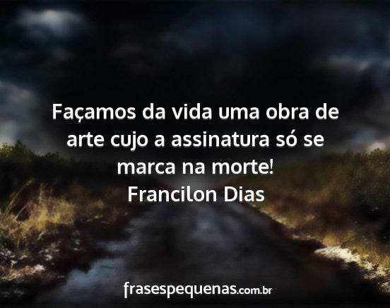 Façamos da vida uma obra de arte cujo a assinatura só se marca na morte!