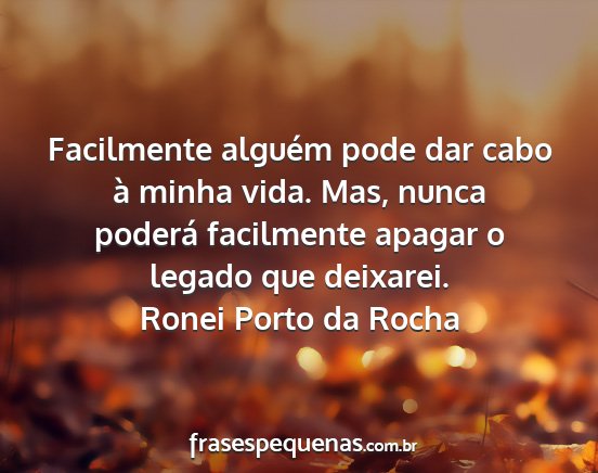 Facilmente alguém pode dar cabo à minha vida. Mas, nunca poderá facilmente apagar o legado que deixarei.Ronei Porto da Rocha