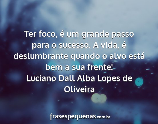 Ter foco, é um grande passo para o sucesso. A vida, é deslumbrante quando o alvo está bem a sua frente!Luciano Dall Alba Lopes de Oliveira