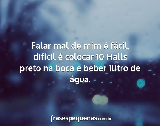 Falar mal de mim é fácil, difícil é colocar 10 Halls preto na boca e beber 1litro de água.