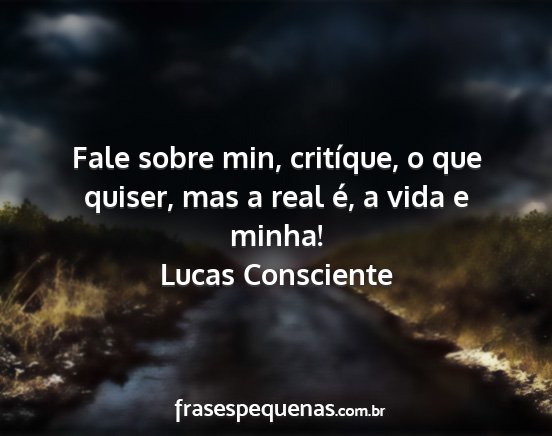 Fale sobre min, critíque, o que quiser, mas a real é, a vida e minha!