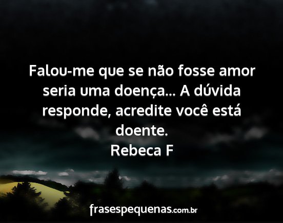 Falou-me que se não fosse amor seria uma doença... A dúvida responde, acredite você está doente.Rebeca F