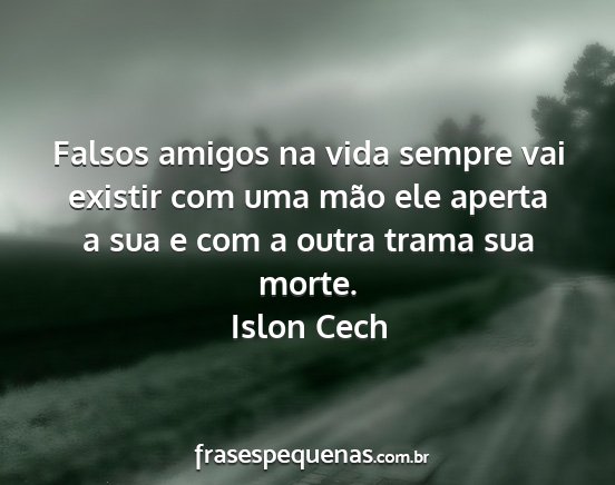 Falsos amigos na vida sempre vai existir com uma mão ele aperta a sua e com a outra trama sua morte.Islon Cech