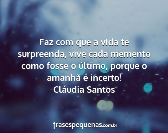 Faz com que a vida te surpreenda, vive cada memento como fosse o último, porque o amanhã é incerto!Cláudia Santos