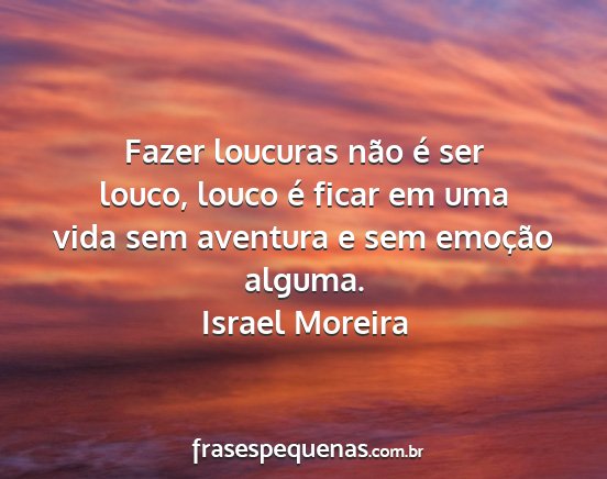 Fazer loucuras não é ser louco, louco é ficar em uma vida sem aventura e sem emoção alguma.Israel Moreira