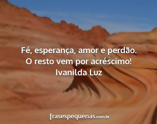 Fé, esperança, amor e perdão. O resto vem por acréscimo!